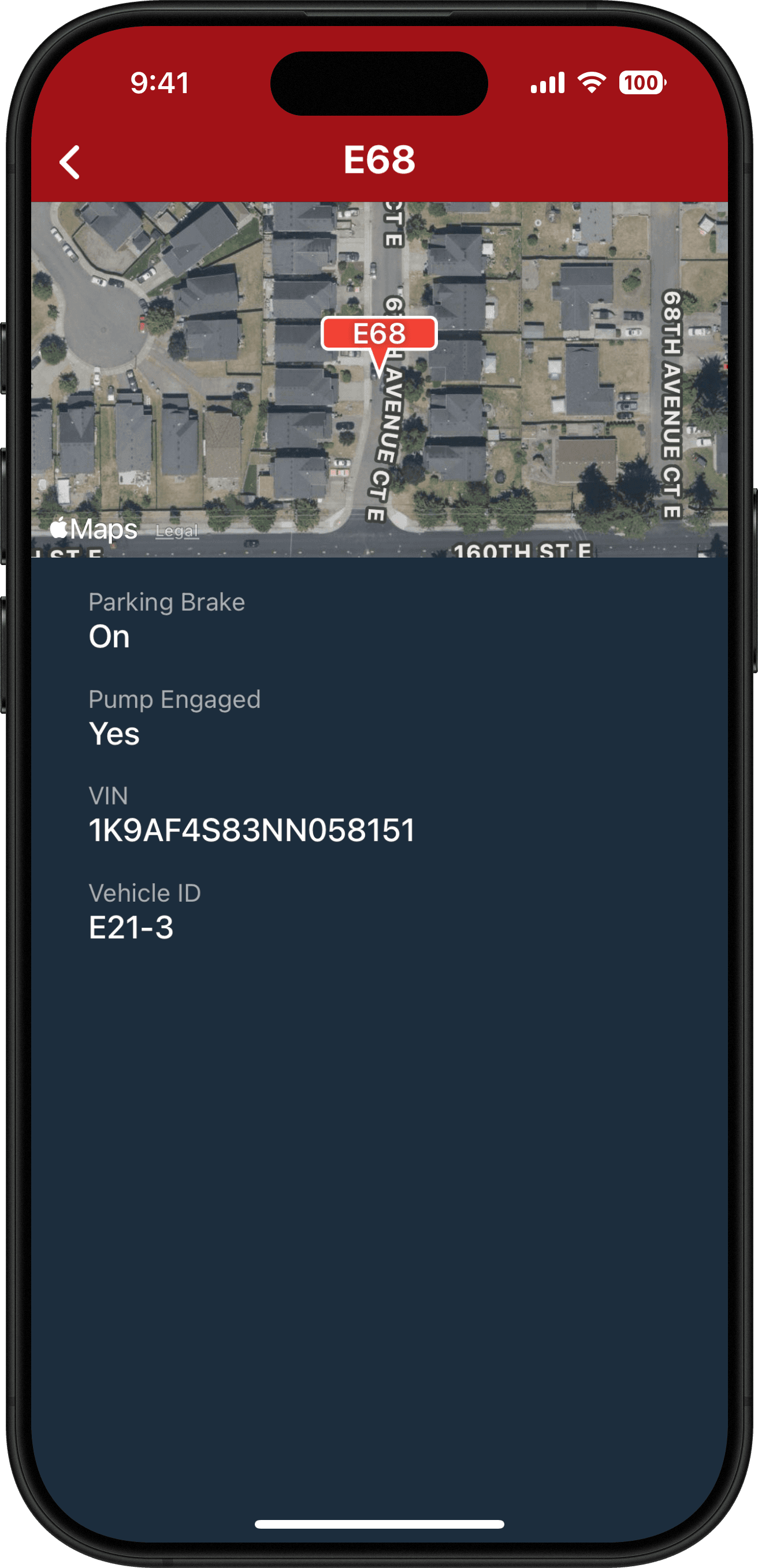 Agency personnel display the Units Map Layer to monitor the real-time location and activity of their fleet. Unit movement Information is typically acquired from a computer-aided dispatch (CAD) system interface or directly from vehicle-mounted GPS routers. In some cases, third-party API or telematics integrations are used. This movement data is augmented with dispatch system statuses, incident and staffing information, and key apparatus states, such as pump engagement or water tank level.