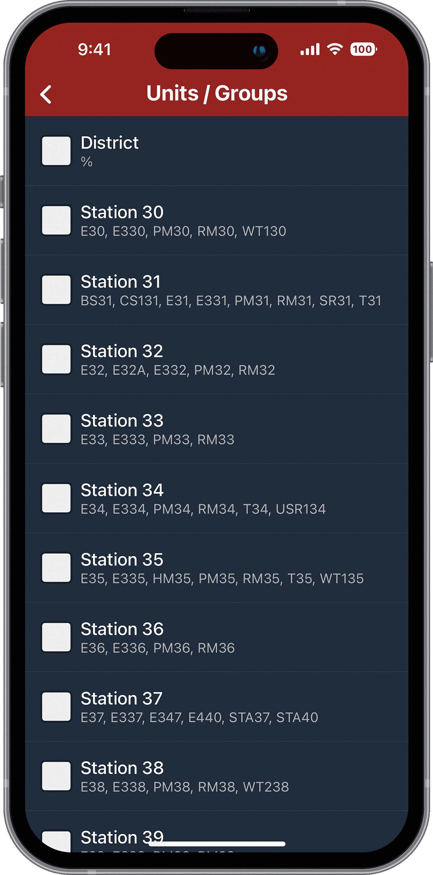 Unit/Group notifications allow Professional Responders to receive dispatch notifications for all incidents based on assignment, such as station or apparatus (e.g., notify me of all incidents for Engine 35).