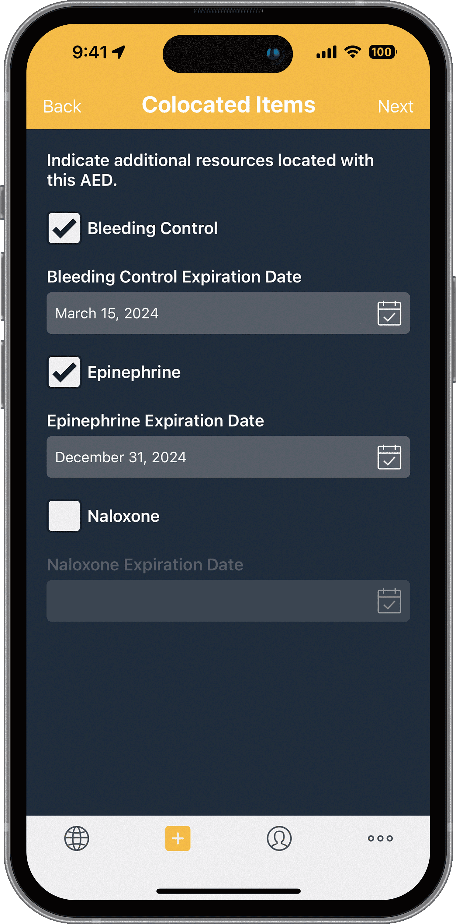 All PulsePoint AED users can view AED locations, including colocated resources such as bleeding control kits, epinephrine, and naloxone. These users can also recommend new AED locations and provide feedback on existing AEDs in the registry.