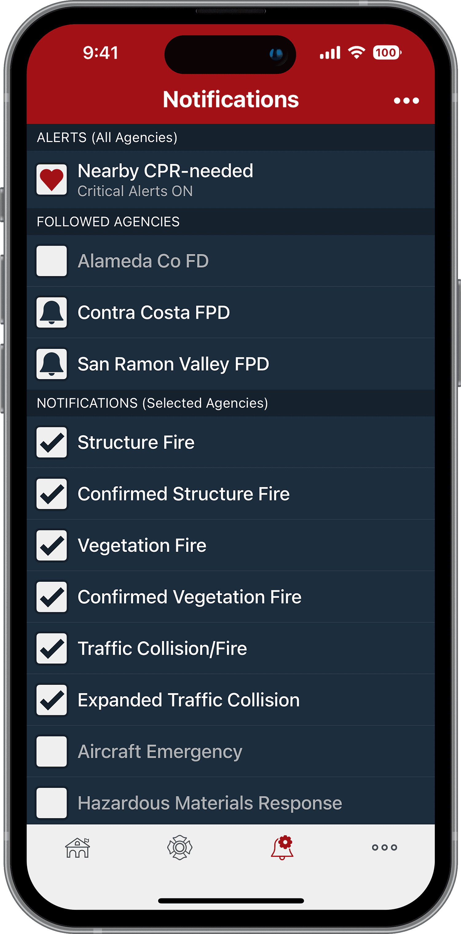 Public CPR Responders are typically community members trained in CPR and automated external defibrillator (AED) use and willing to assist if an incident occurs near them. These community first responders are only notified of nearby cardiac arrest events occurring in public places. To promote daily app usefulness and encourage program participation, these users are shown a filtered list of emergencies occurring in the community and offered notifications of public interest events such as traffic collisions and wildland fires.
