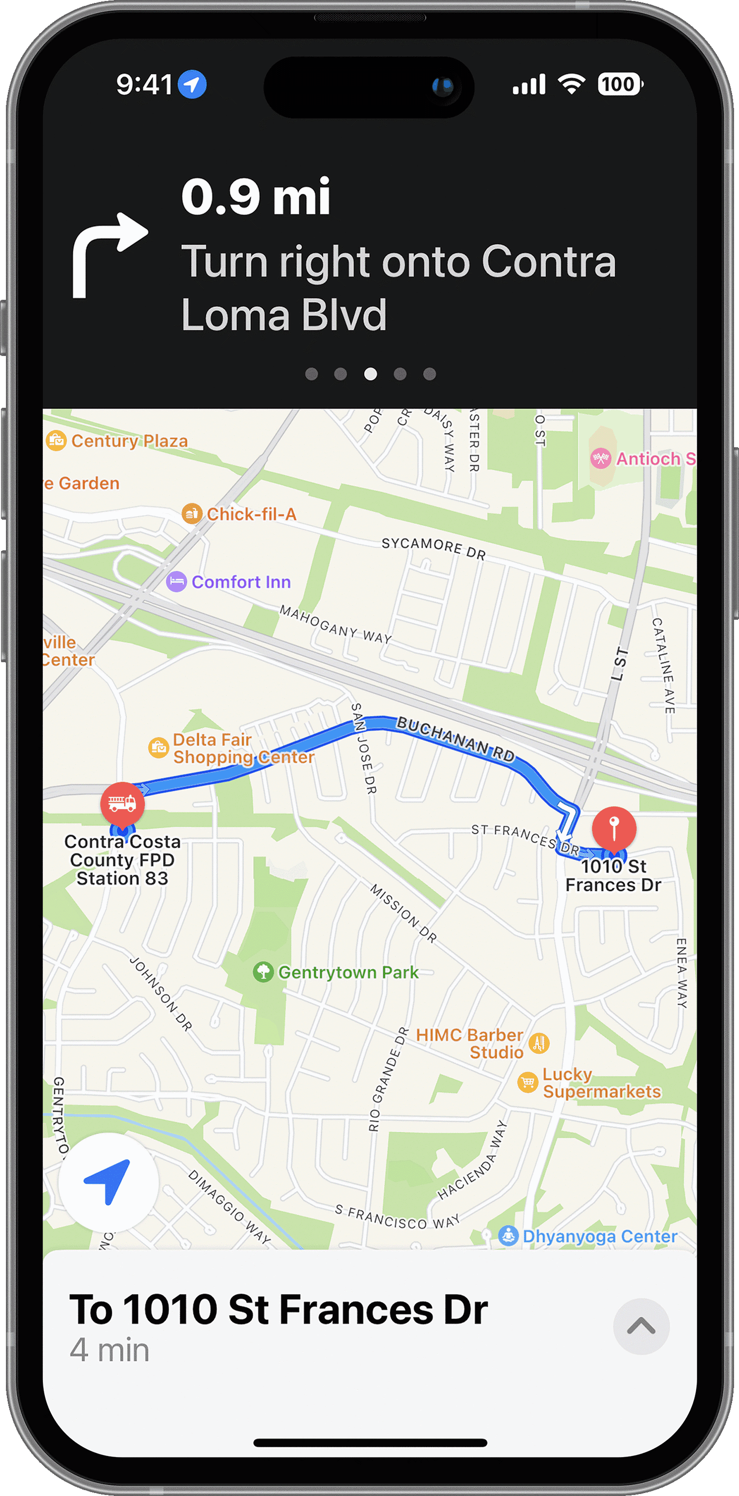 Professional Responders can receive immediate turn-by-turn driving directions to any incident by tapping the navigate icon on the incident detail thumbnail map. Other user types are not provided this functionality/icon on medical incident types.